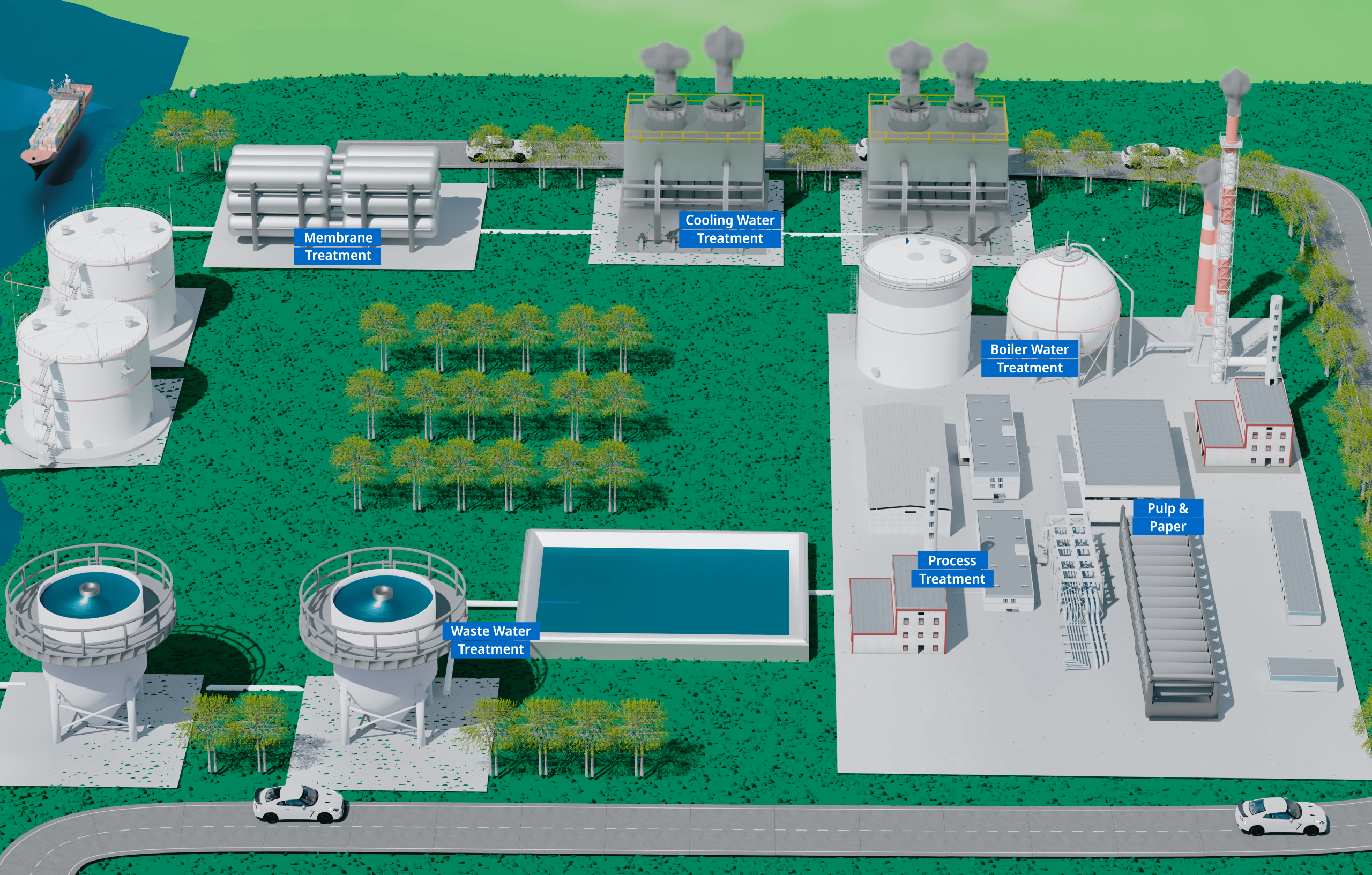 Across the entire water cycle, from boiler and cooling systems to process treatment, wastewater, and reuse, our technologies are designed to optimize performance, reduce water and energy consumption, protect assets, and deliver measurable, long‑term sustainability results.